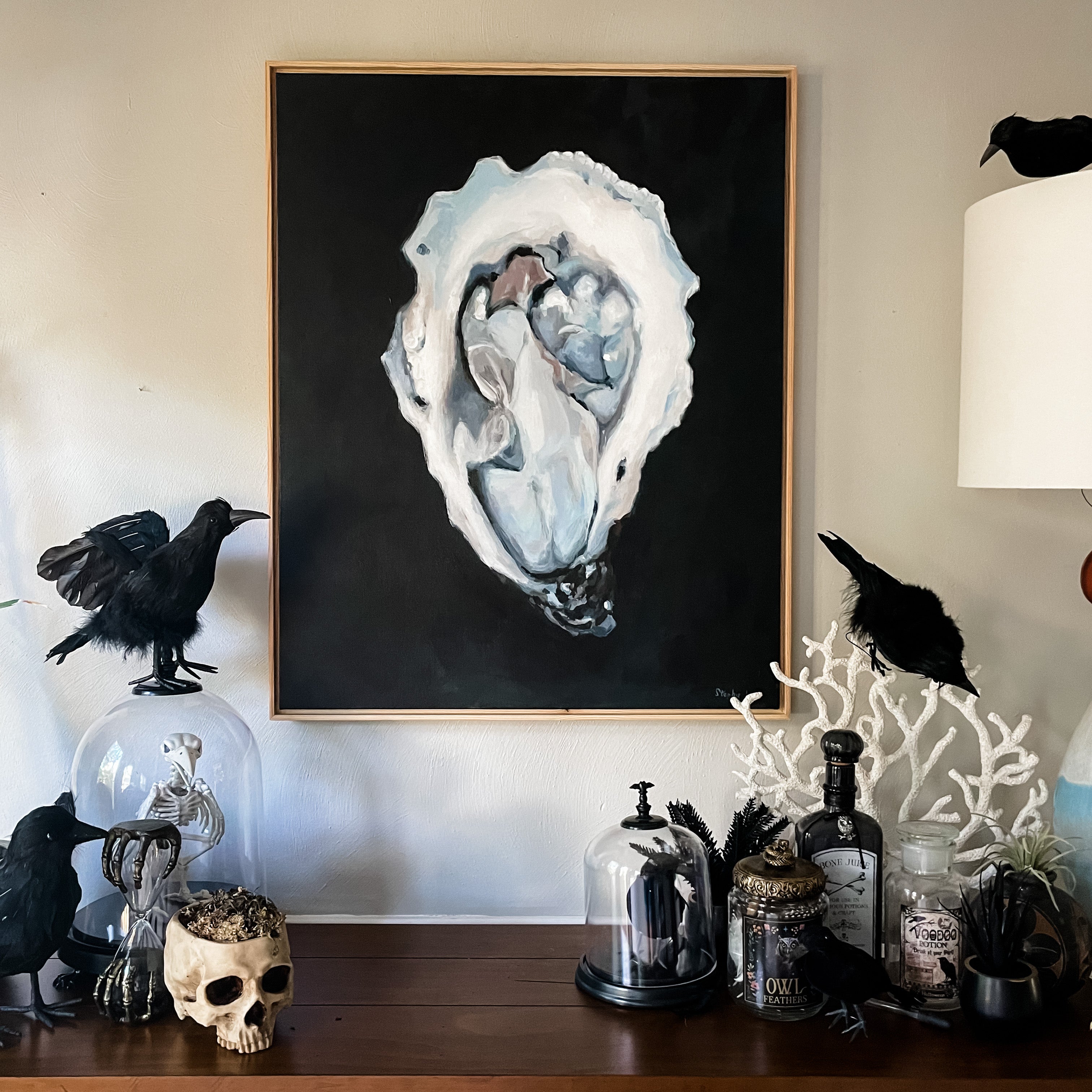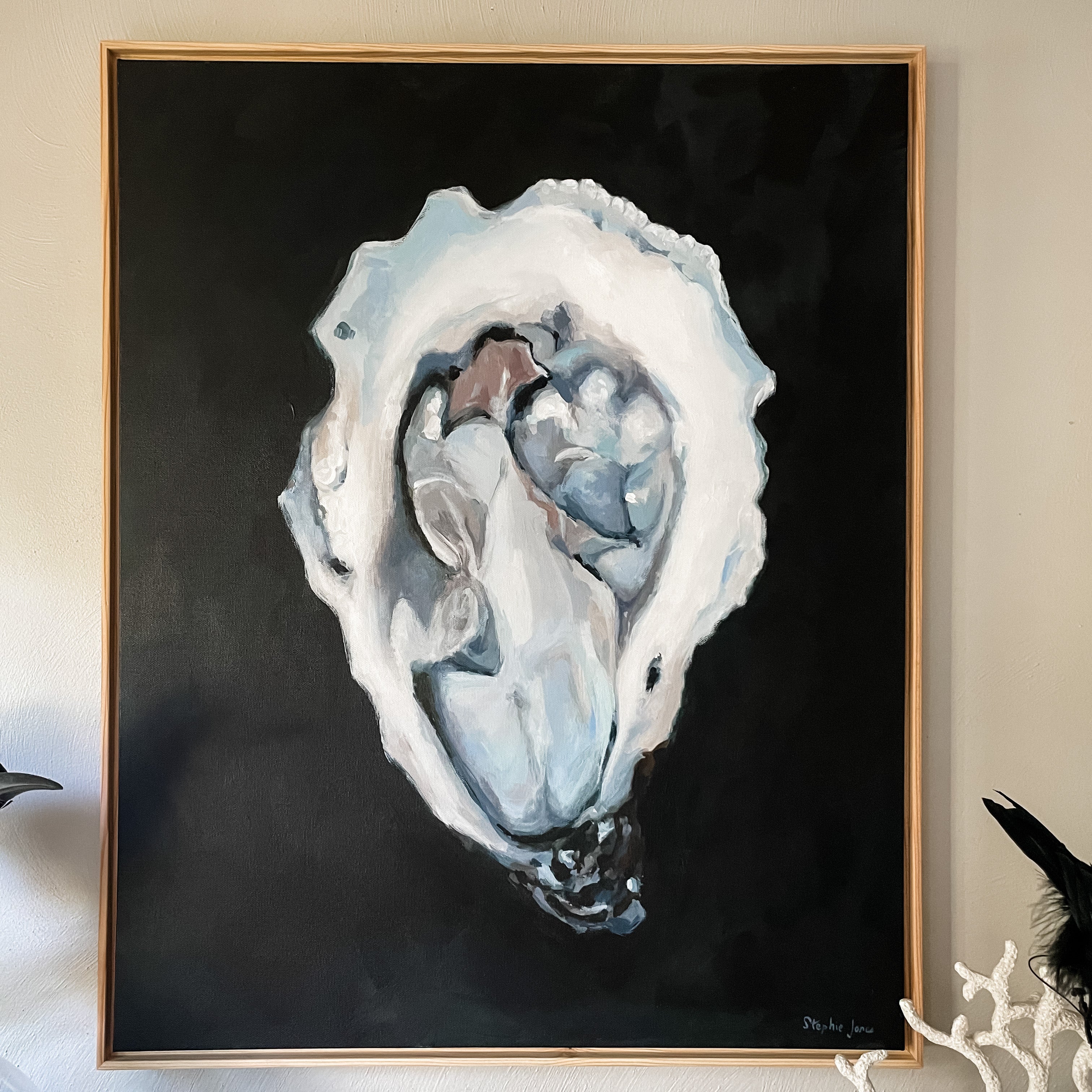 Brightly painted oyster by Stephie Jones, acrylic on canvas.