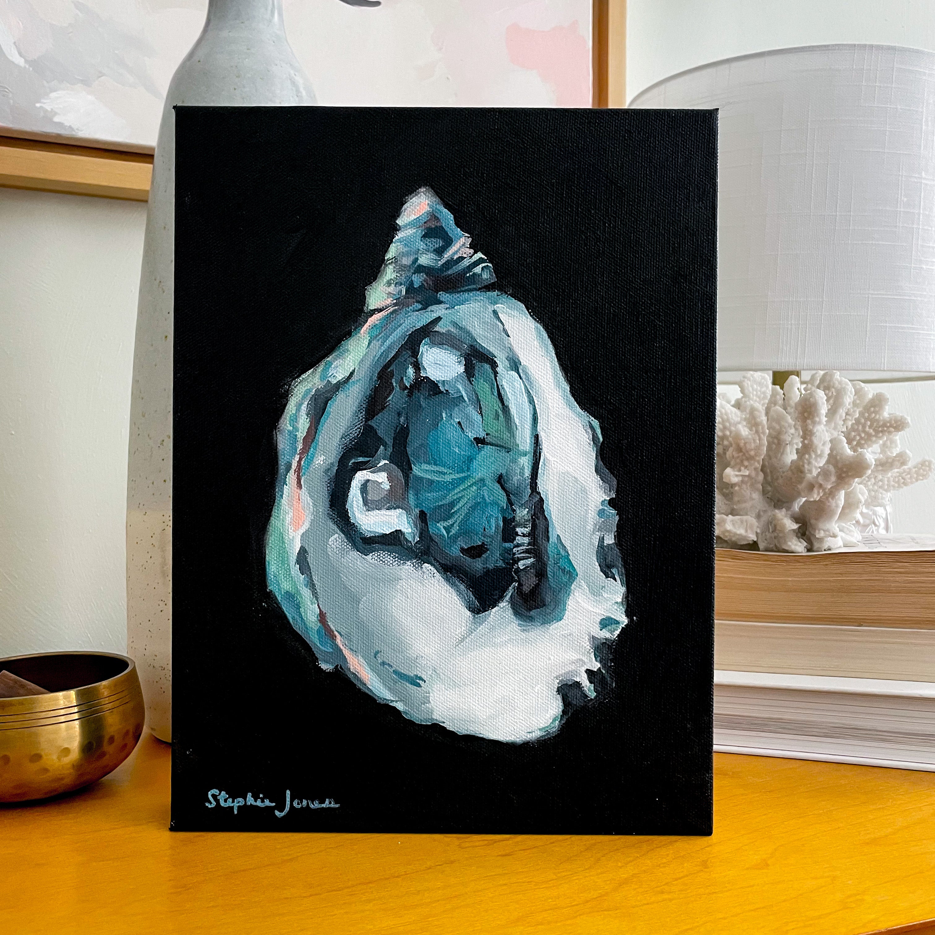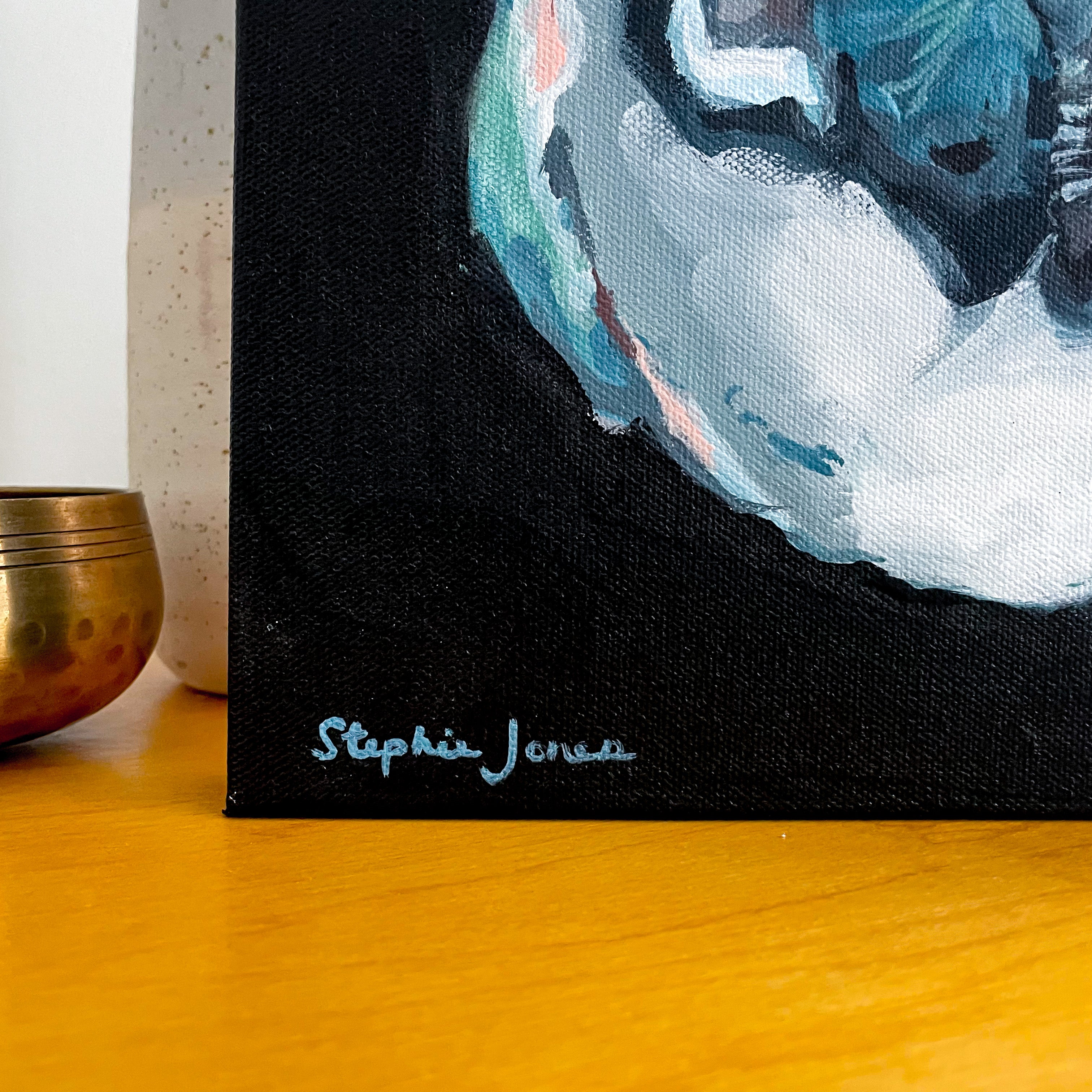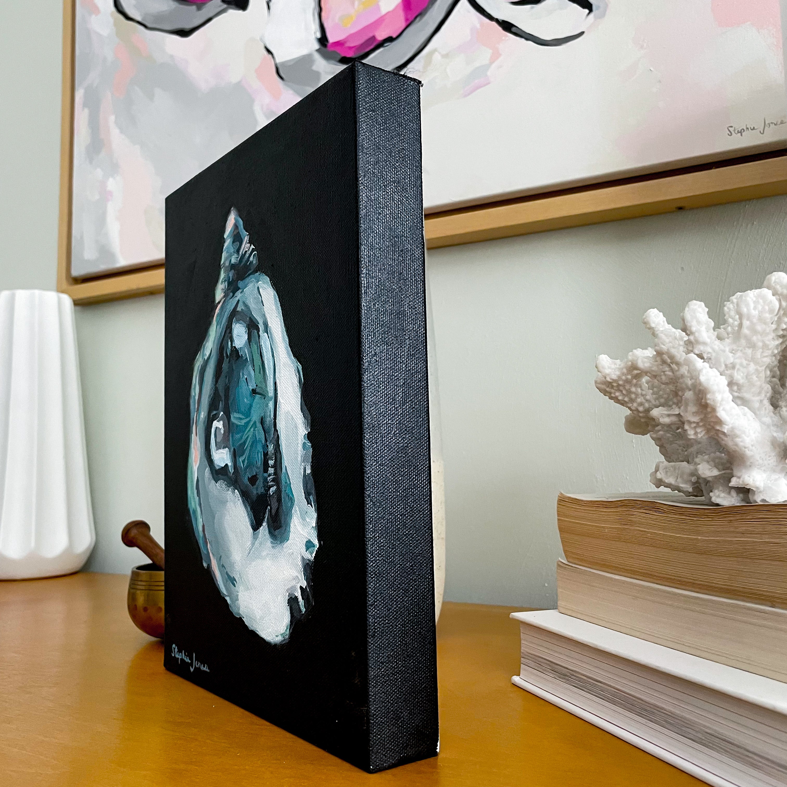 9"x12" acrylic on canvas, painted gallery wrapped edge (1.5"). Wired and ready to hang.