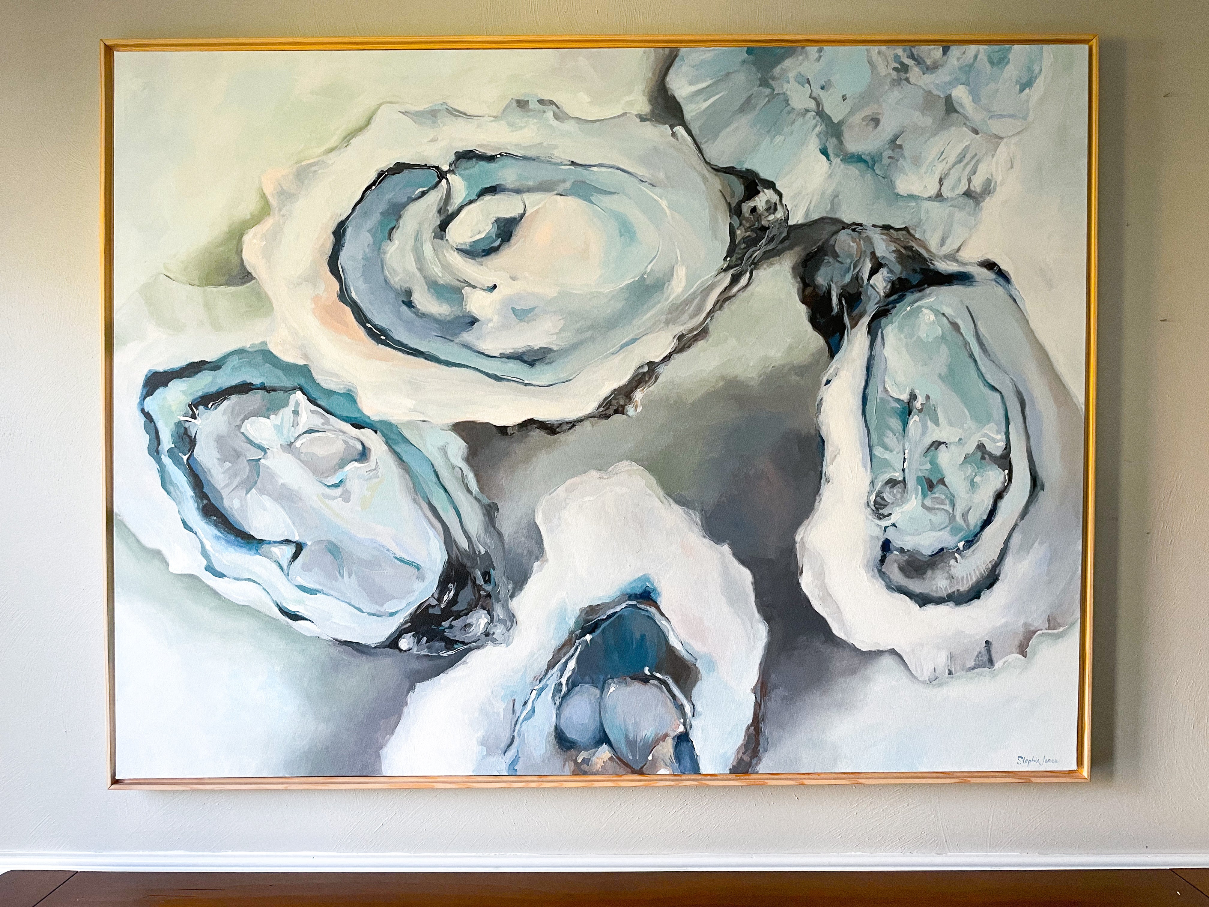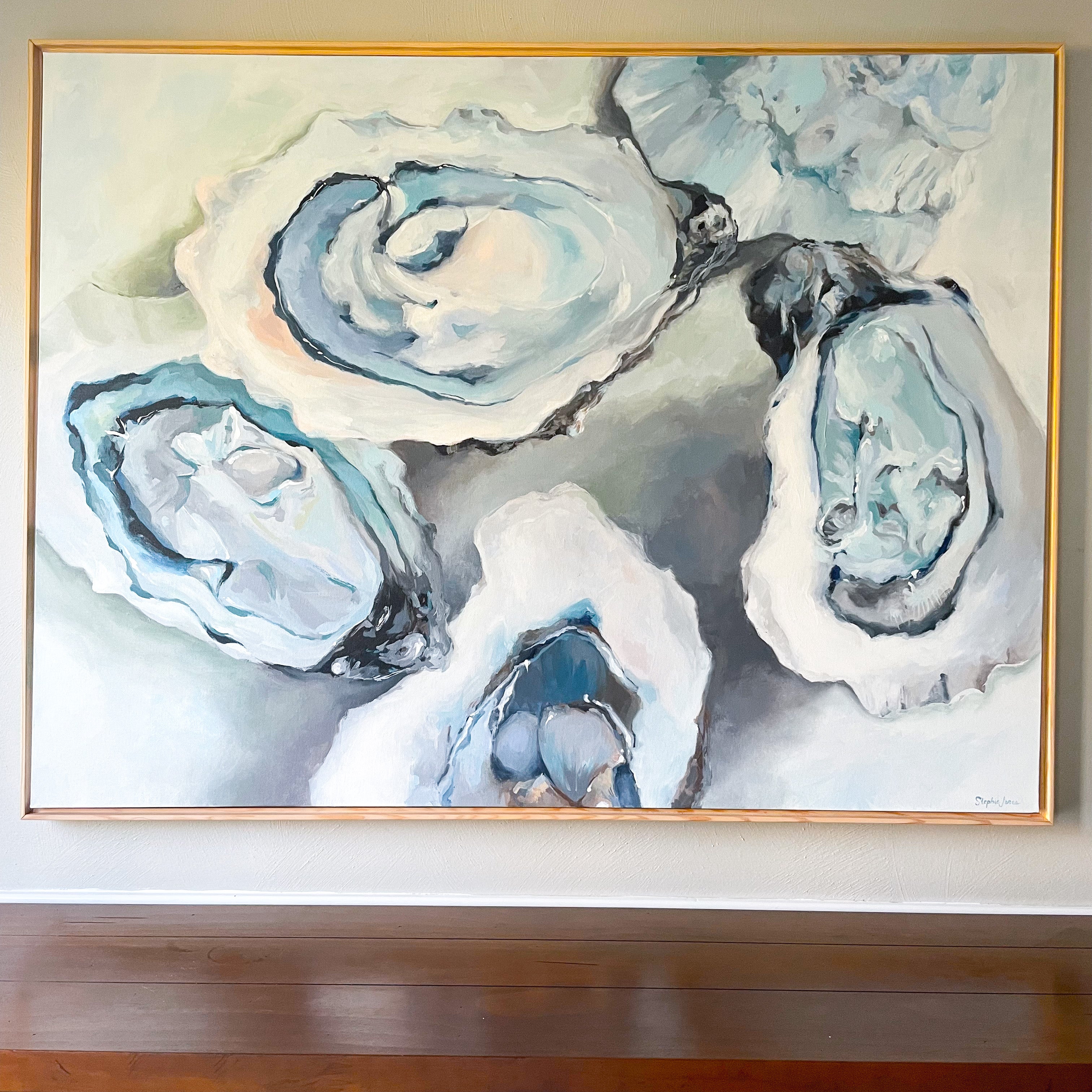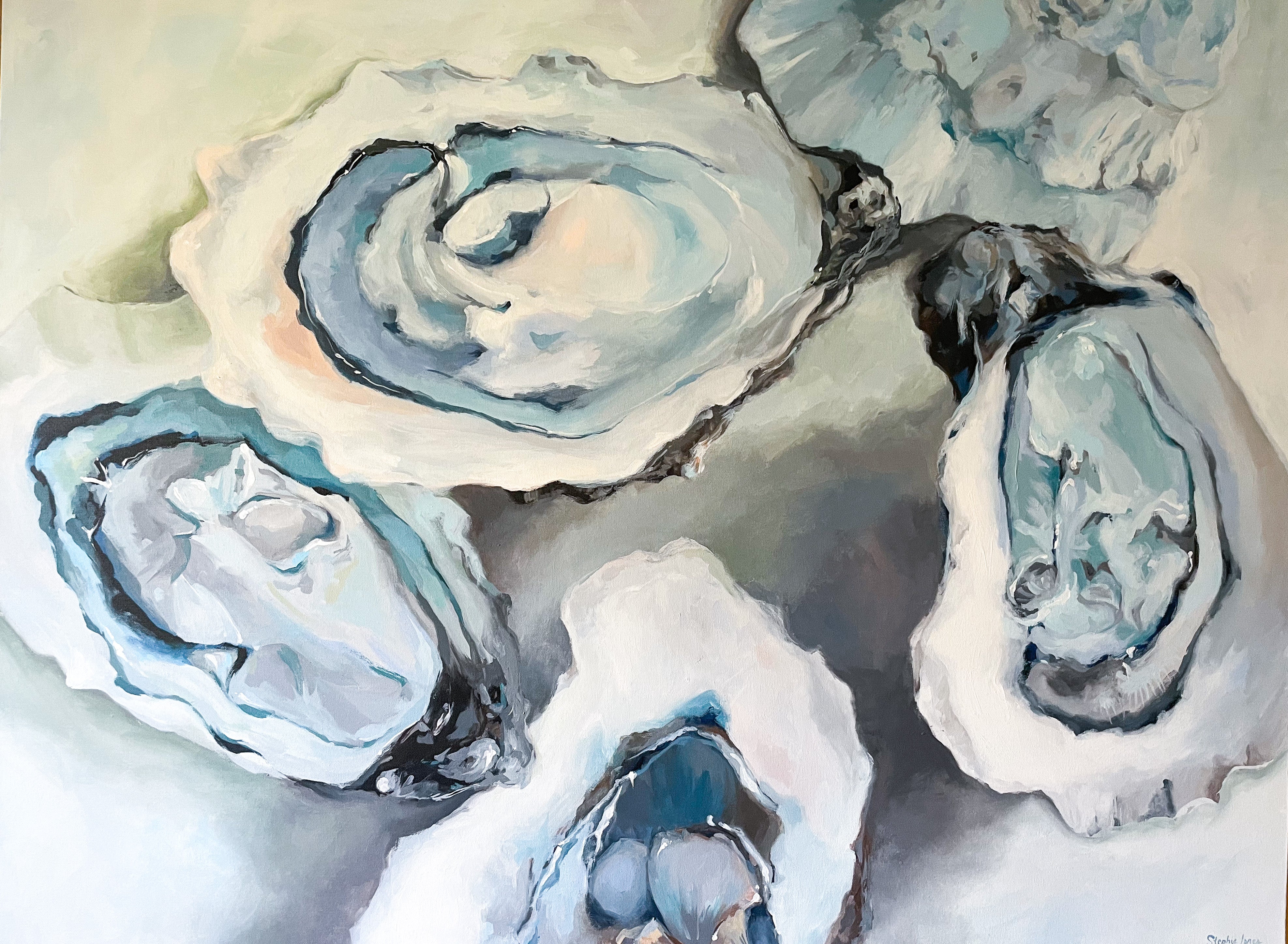 Serenely painted painted oysters by Stephie Jones, acrylic on canvas.