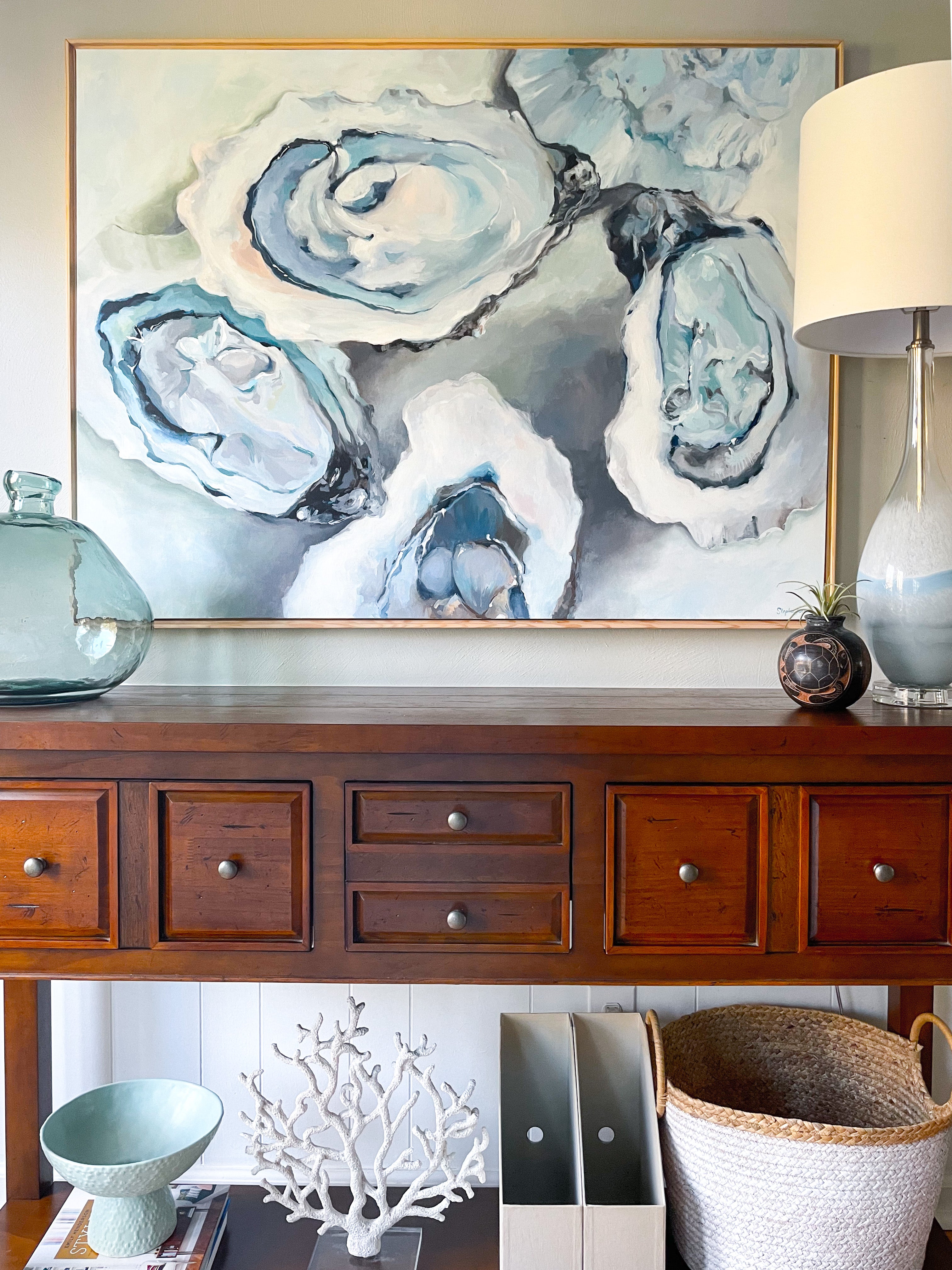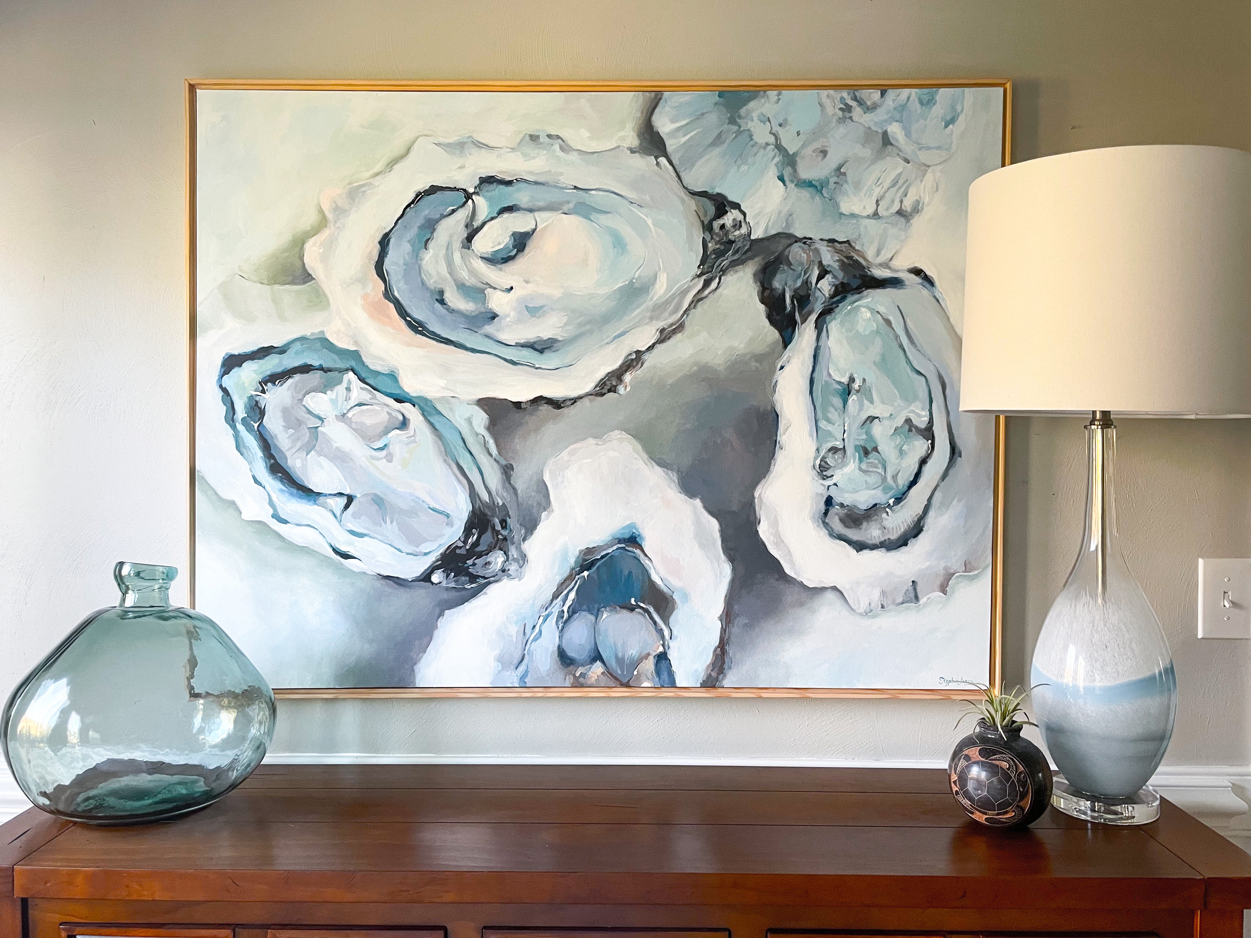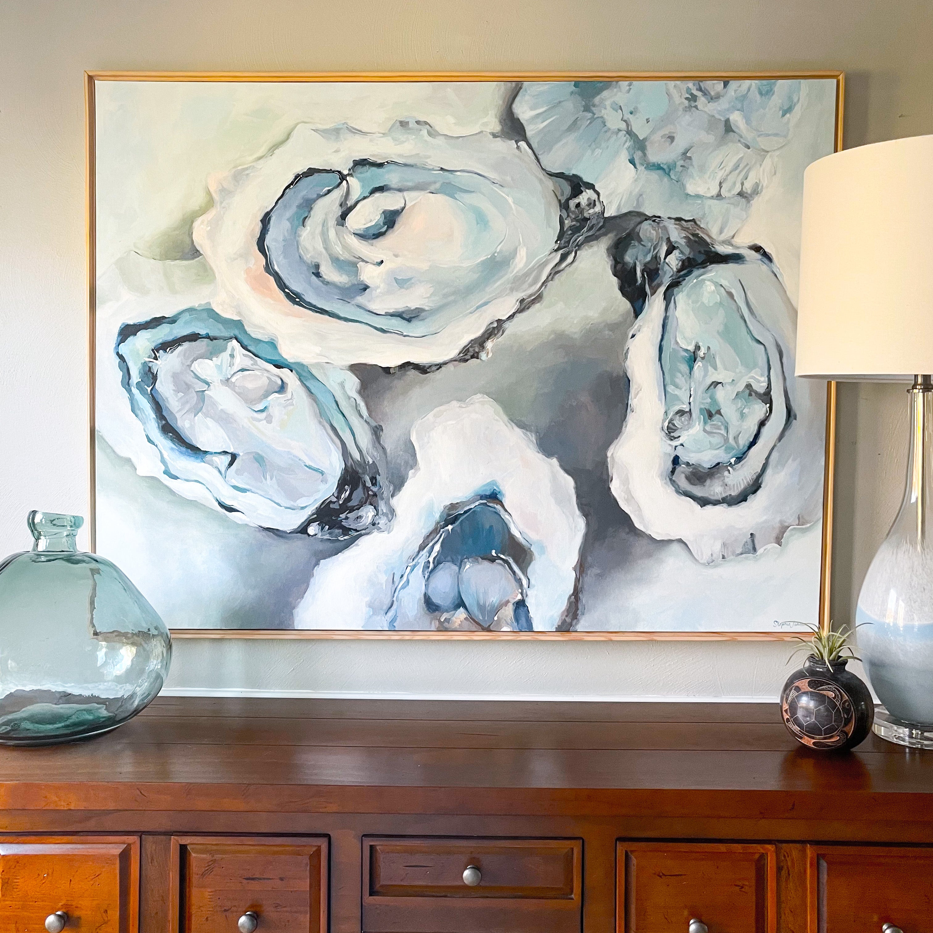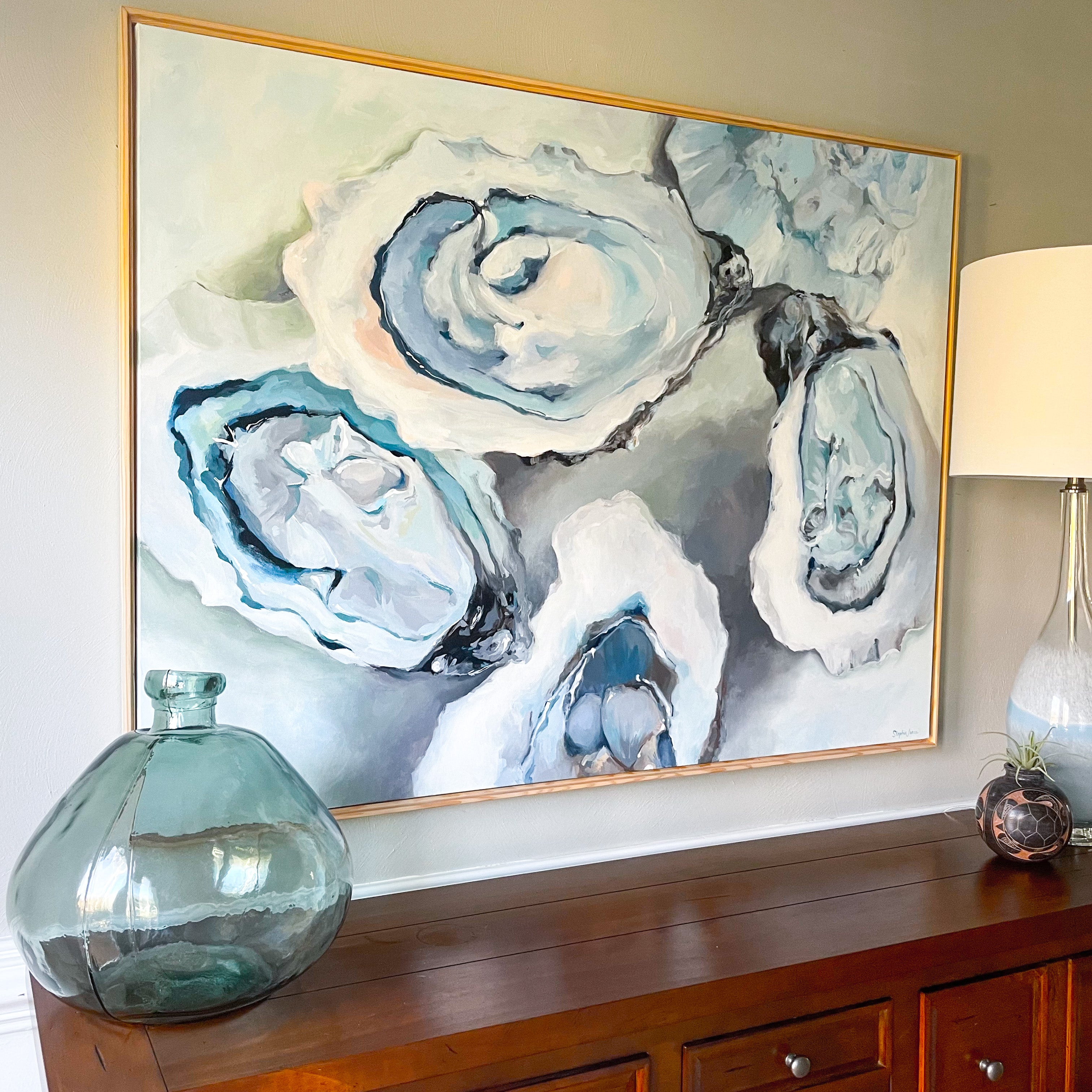 Serenely painted painted oysters by Stephie Jones, acrylic on canvas.