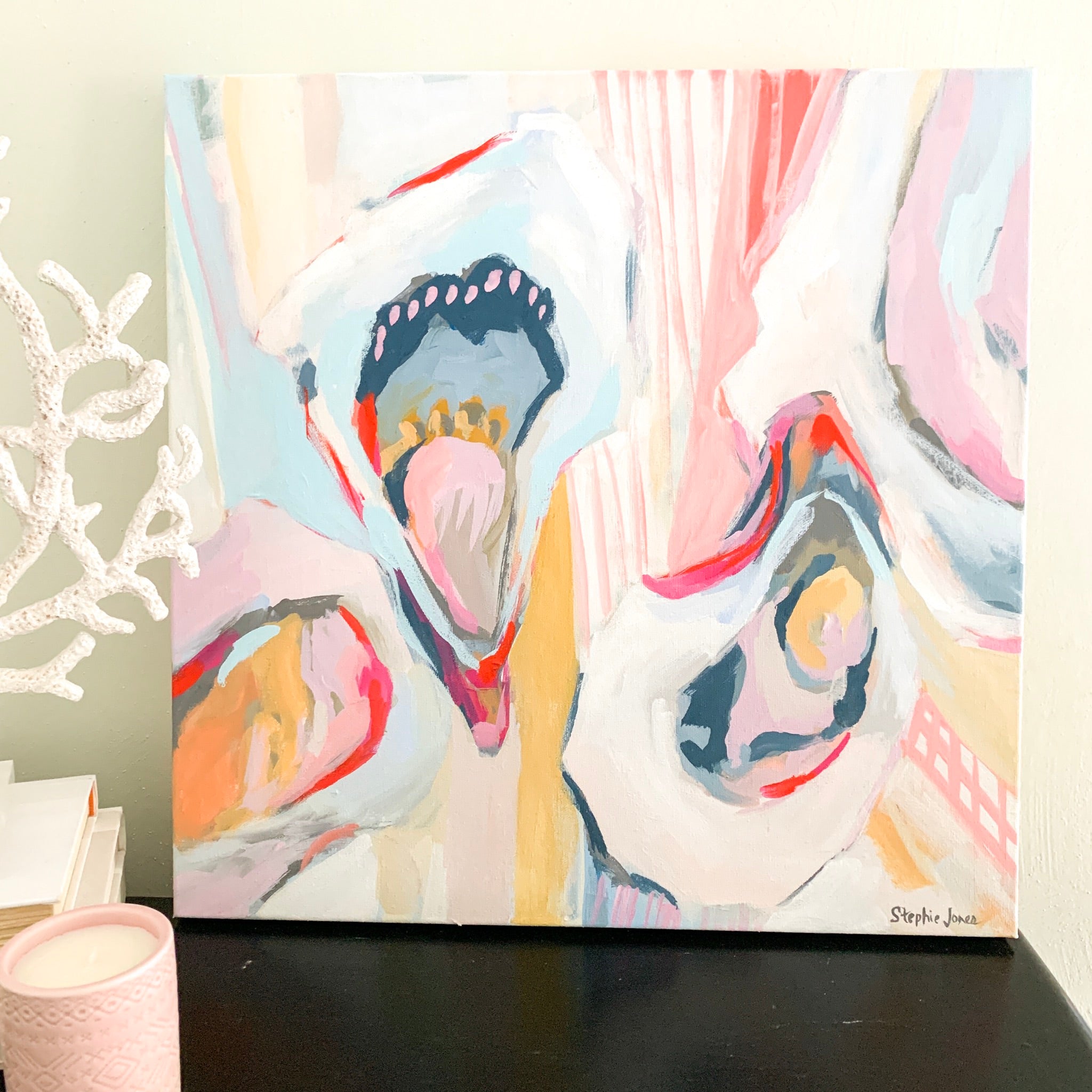 Acrylic on canvas, 18“ x 18“ Gallery wrapped, 1.25 inch painted edge, wired and ready to hang.