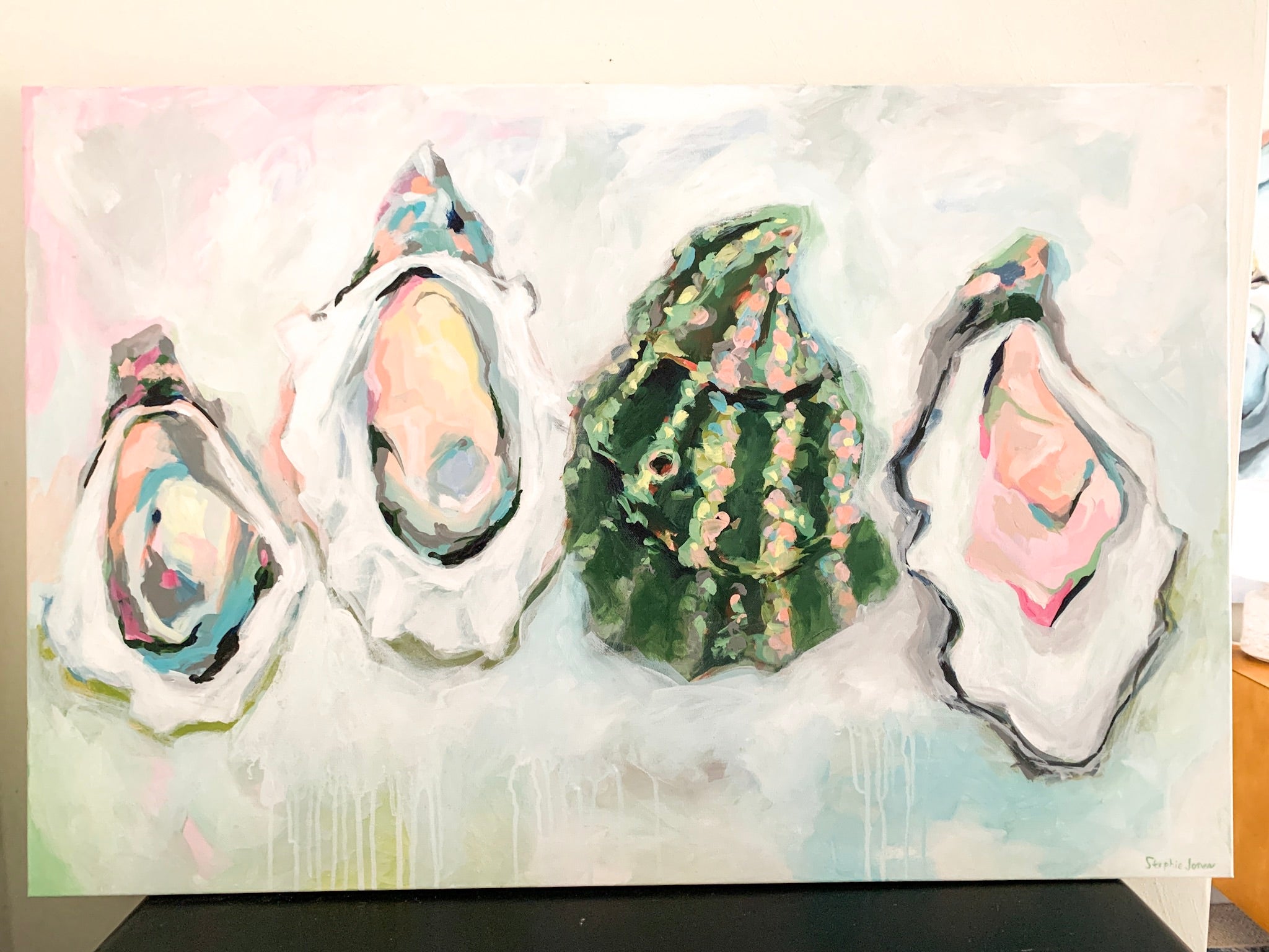 Acrylic on canvas, 36“ x 24“ Gallery wrapped, 1.25 inch painted edge, wired and ready to hang.