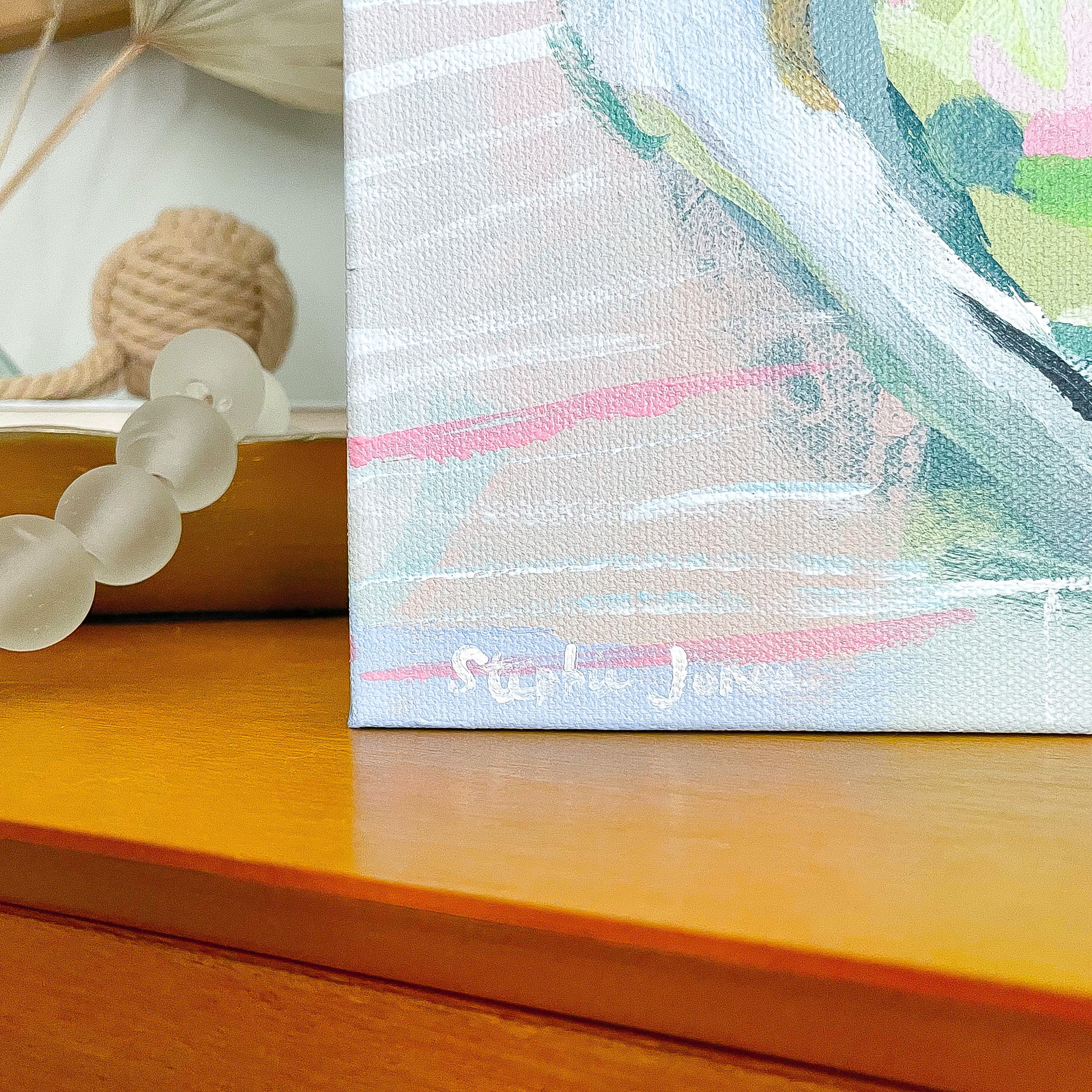 Your fine art painting comes ready to hang with coated wire and installed D-rings—perfect coastal home decor for a living room, bedroom, bathroom, kitchen or entryway.