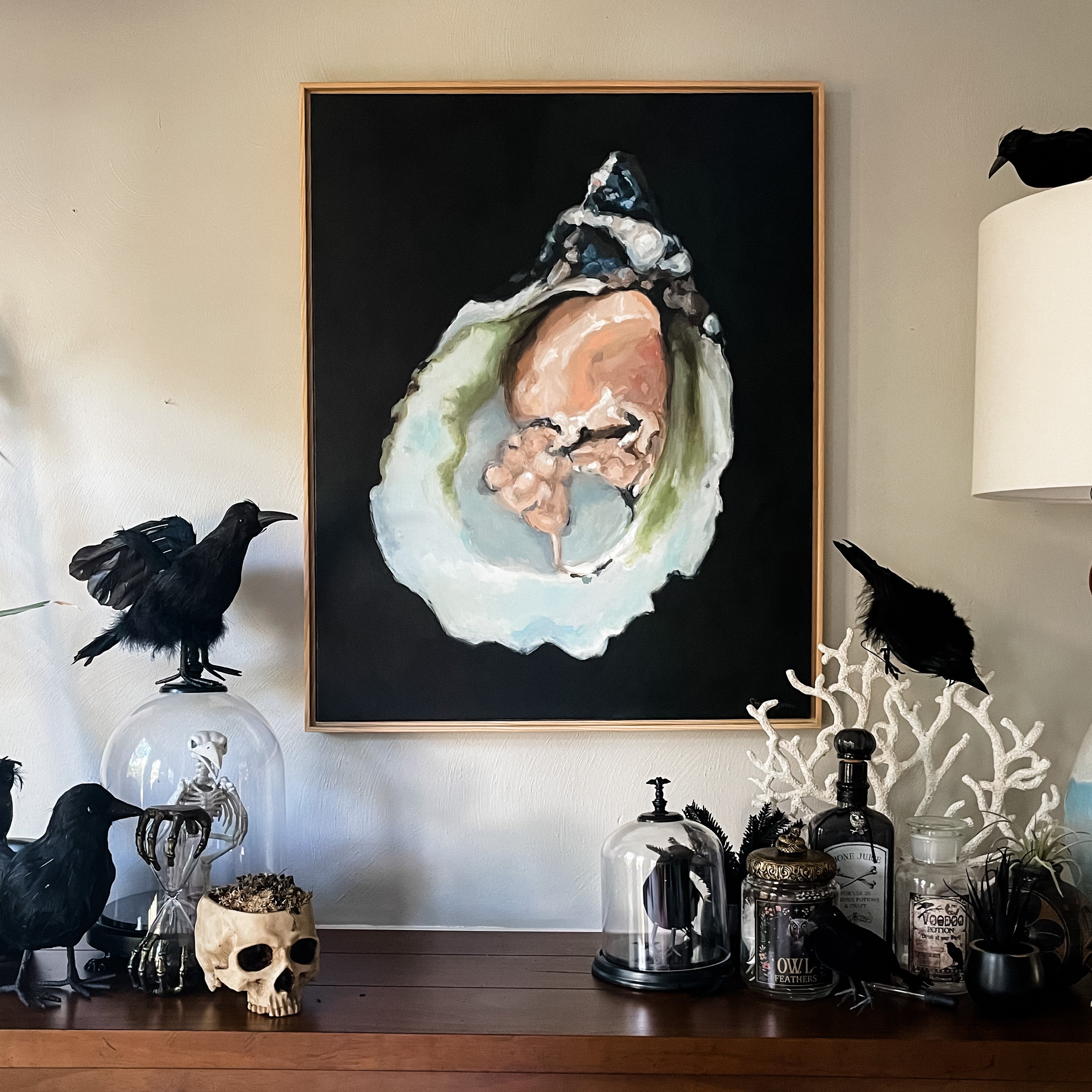 Brightly painted oyster by Stephie Jones, acrylic on canvas.