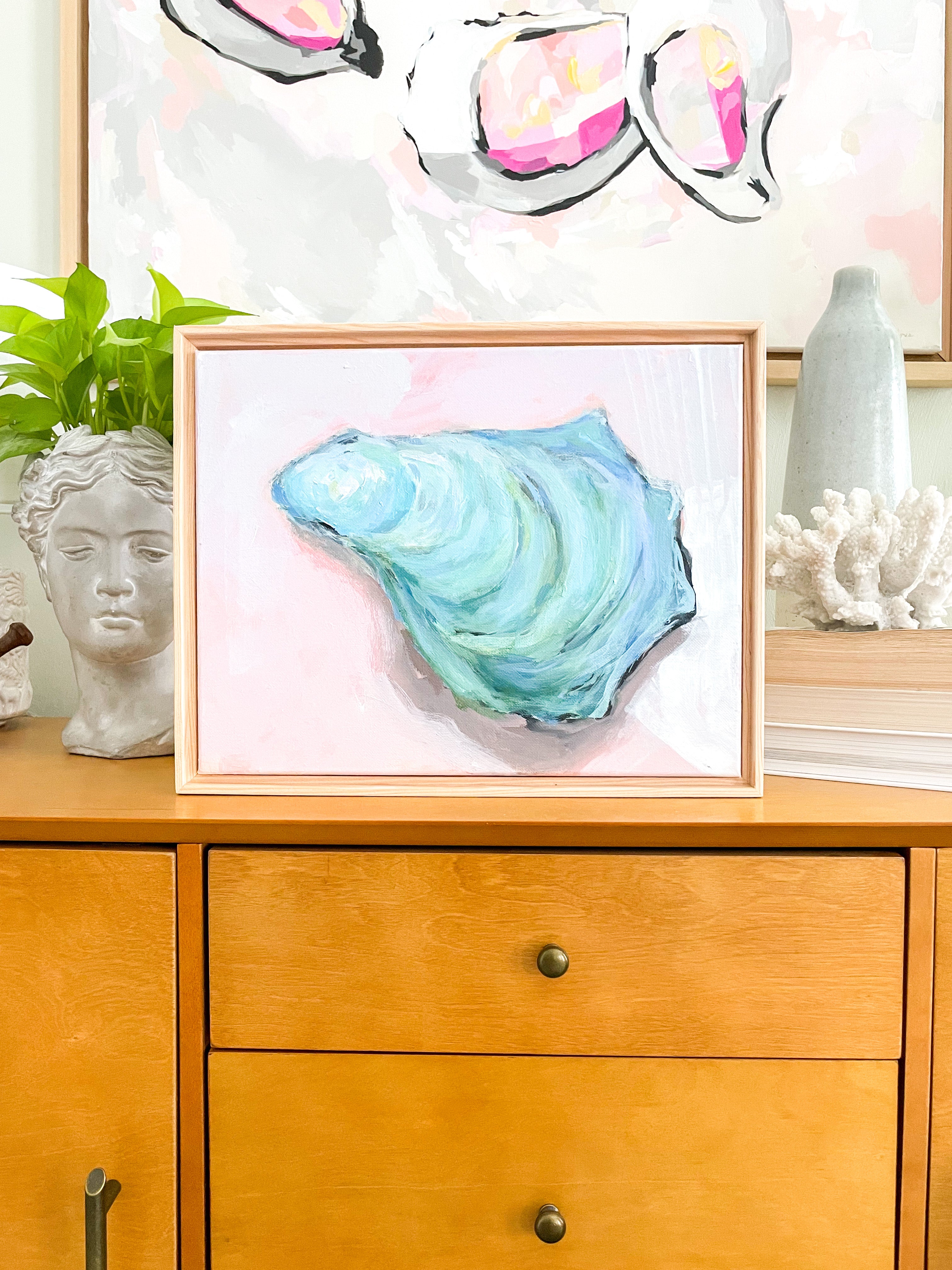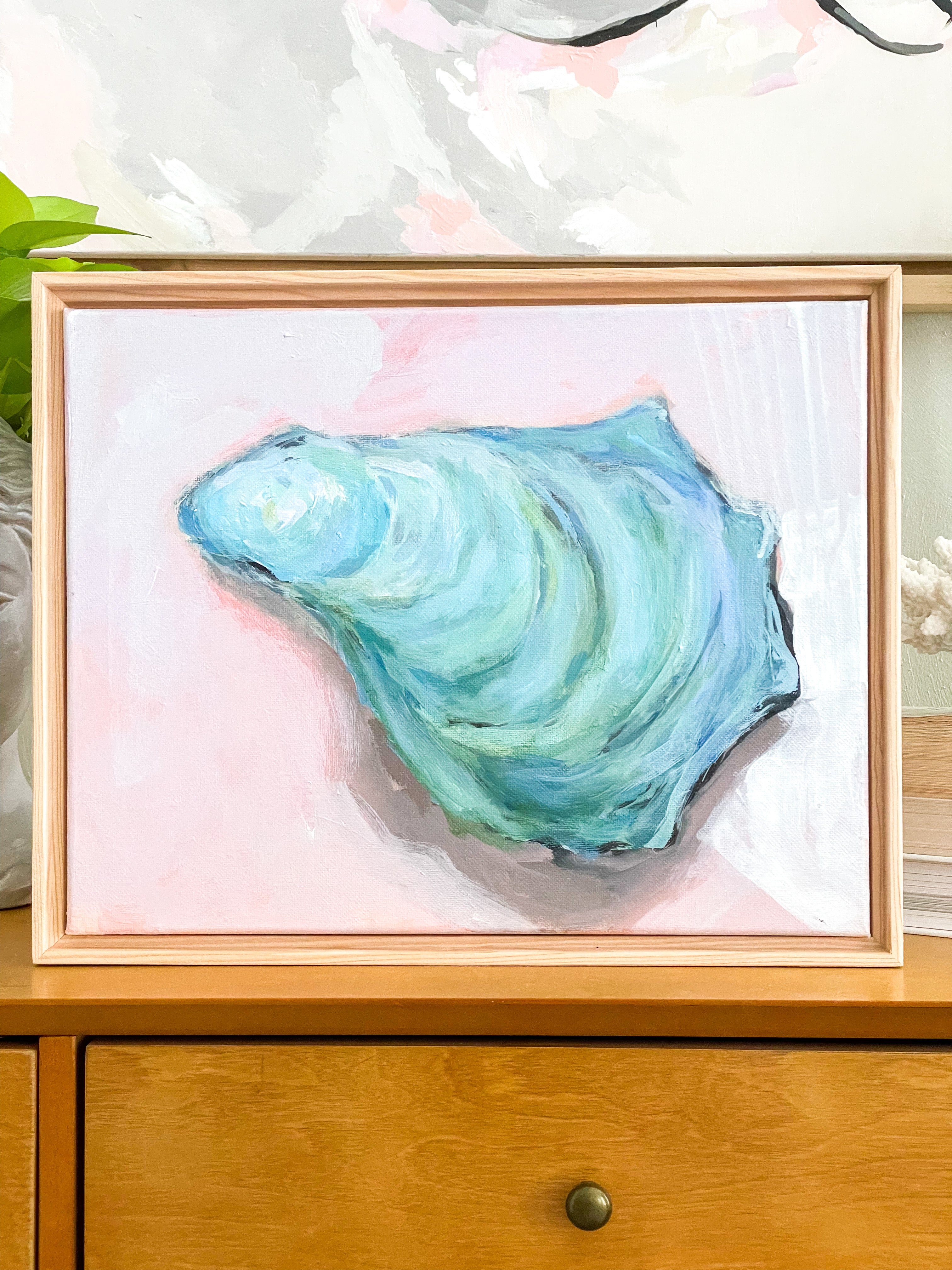 Brightly painted oyster by Stephie Jones, acrylic on canvas.
